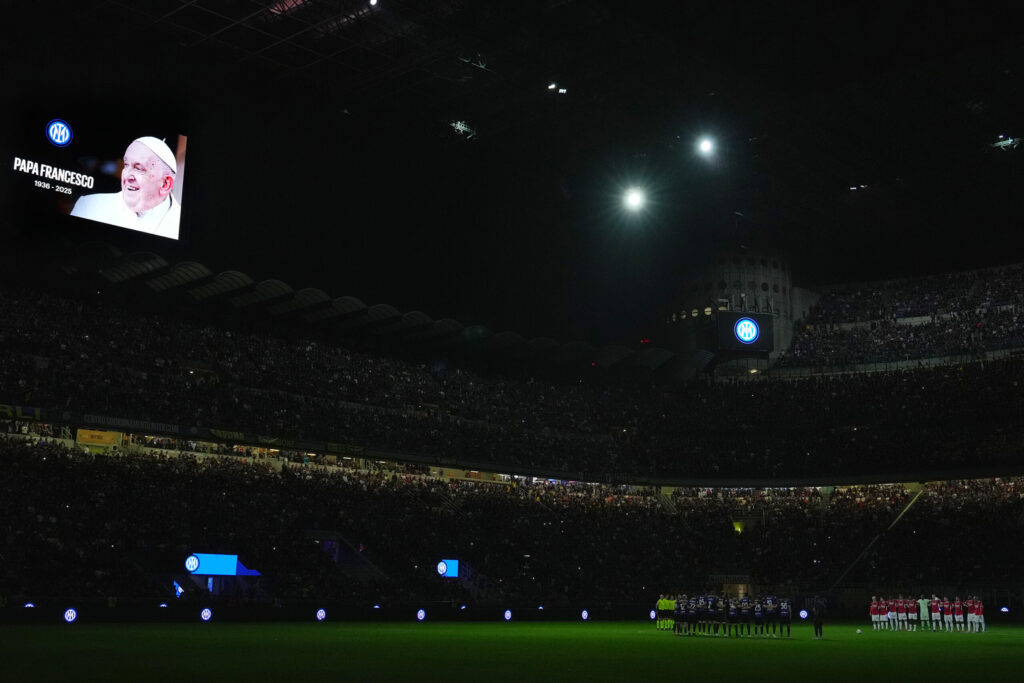 Milan, 23 April (LaPresse) – A suggestive tribute to Pope Francis, who passed away on Monday, at the San Siro before the Coppa Italia derby between Inter and AC Milan. On the big screens at the Meazza, a film was projected before the match, for an emotional moment to the notes of Ennio Morricone. A minute's silence was also observed.